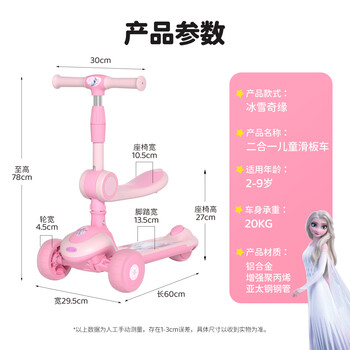 迪士尼(Disney)儿童滑板车2-6-9岁可坐可滑二合一多功能滑滑车冰雪奇缘儿童礼物