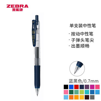 斑马牌(ZEBRA)按动中性笔 0.7mm子弹头啫喱笔签字笔 JJB15 学生子弹头签字笔 商务笔高颜值办公用品 蓝黑色