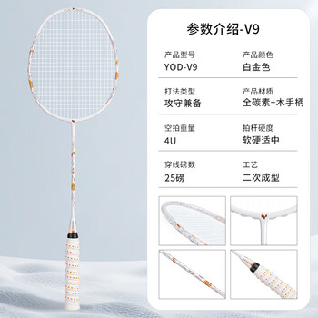 尤迪曼白金色二次成型羽毛球拍4U全碳素V9单拍(已穿线)