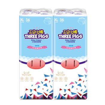三只小猪3D轻薄婴儿拉拉裤XL码72片 超薄透气尿不湿尿片尿布(12-17KG)