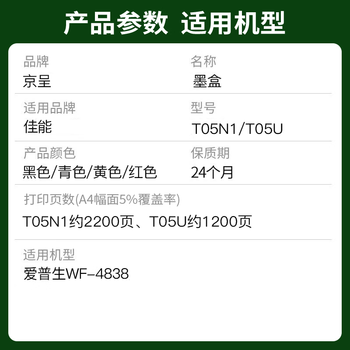京呈T05U1 黑色墨盒适用爱普生(EPSON)WF-4838打印机机型墨粉盒WF4838墨水盒