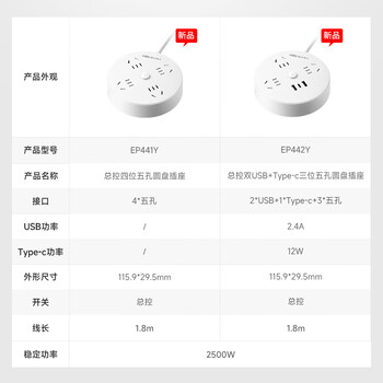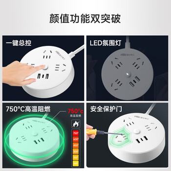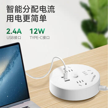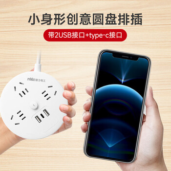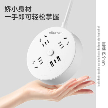 NVC雷士电工 3位五孔1.8米 usb+Type 圆形插座 插线板插排插座排插插板拖线板接线板 EP442Y
