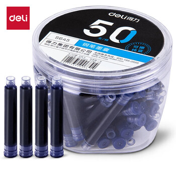 得力(deli)(deli)钢笔墨囊 学生钢笔墨水笔墨囊 可替换 纯蓝墨囊 50支/盒大包装 S645