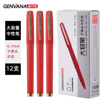金万年【12支大容量】0.7mm红色中性笔 签字笔 耐磨笔头办公签字笔磨砂笔杆水笔G-1327-003
