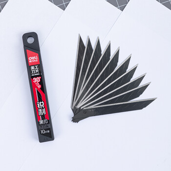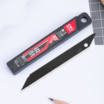 得力30°角小号黑色美工刀片 耐磨黑刀片精雕细刻 单盒装78003