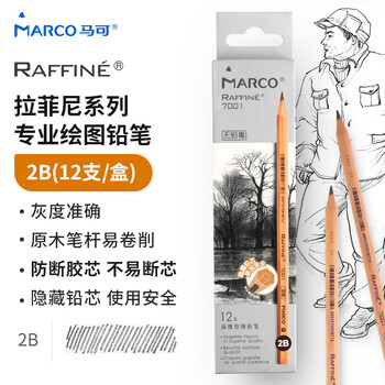 【全网低价】马可(MARCO)2B铅笔12支素描铅笔 原木专业美术六角杆手绘速写绘图笔纸盒装学生初学者考试画画专用7001-2B 速写 马克笔绘画