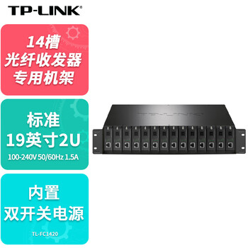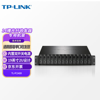 TP-LINK普联双电源14槽位光纤收发器专用机架单纤双纤单口光电转换器机箱标准19英寸2U机柜TL-FC1420