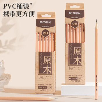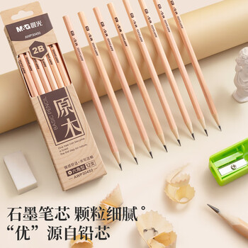 晨光(M&G)文具2B铅笔12支 原木六角木杆铅笔 学生开学涂卡书写美术素描绘图木质铅笔AWP30450