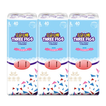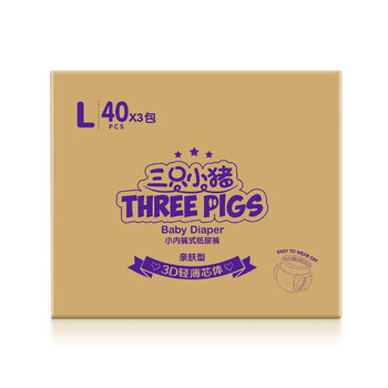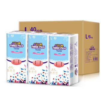 三只小猪3D轻薄婴儿拉拉裤L码120片 超薄透气尿不湿尿片尿布(9-14KG)