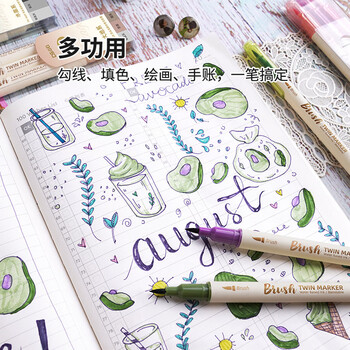 点石马克笔大毛刷水性手账笔套装双头绘画软头学习用品Brush花体手帐笔素材美术动漫水彩笔DS-302E