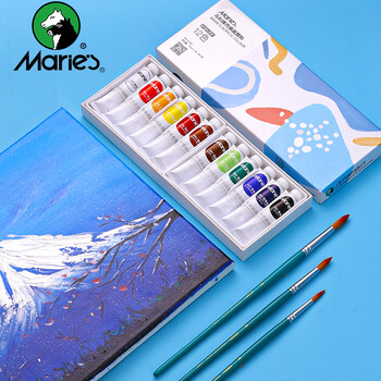 马利(Marie's)丙烯颜料12色12ml盒装墙绘手绘饰品防水不掉色丙烯画颜料丙烯A-812绘画美育工具