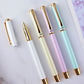 英雄(HERO) 钢笔 1302D铱金笔 学生正姿练字笔 办公签字笔墨水笔 粉色 (暗尖EF尖)