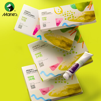 马利(Marie's)水彩颜料盒装24色12ml 内部小盒6支划分便携学生儿童水彩绘画套装 膏体细腻色彩饱和W-1342美术写生