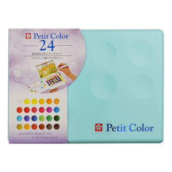 樱花(SAKURA)固体水彩颜料24色马卡龙套装(薄荷绿色外壳)便携透明水彩写生学生绘画用品美术写生