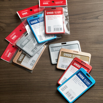 优和(UHOO)工作牌工牌铝合金双面证件卡套竖式 员工金属胸牌厂牌工作证 深蓝 6042
