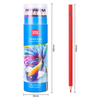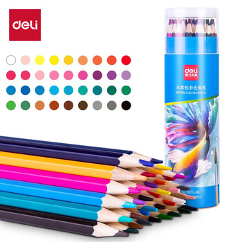 得力(deli)36色水溶性彩铅原木六角杆彩色铅笔学生涂色专业彩绘画笔套装文具纸筒彩笔