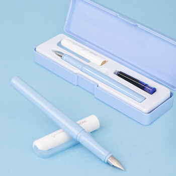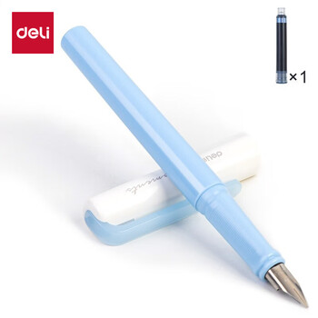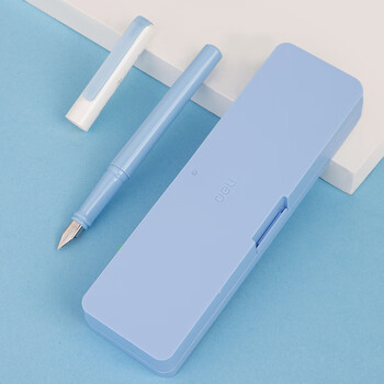 得力EF明尖学生正姿练字钢笔套装 办公签字笔墨水笔 附笔盒 纯蓝墨囊 A932