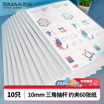 西玛(SIMAA)【全网低价】10只A4/10mm抽杆夹 办公报告夹拉杆夹文件夹资料夹白色 文具 6754