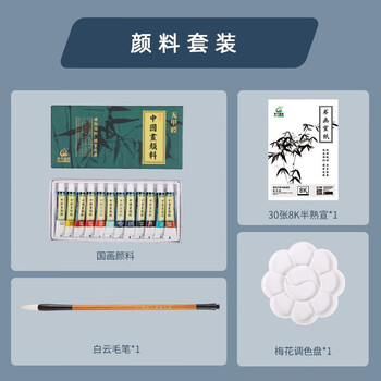 青竹画材(CHINJOO)无甲醛国画颜料套装24色12ml初学者成人入门矿物颜料绘画工具美术写生