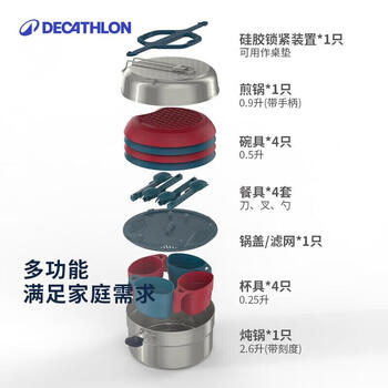 迪卡侬户外露营野炊炊具厨具可折叠FOR2深灰色0.9L---1人-2558430