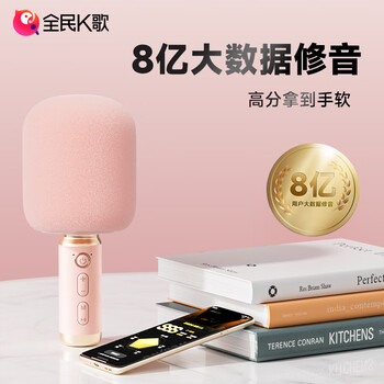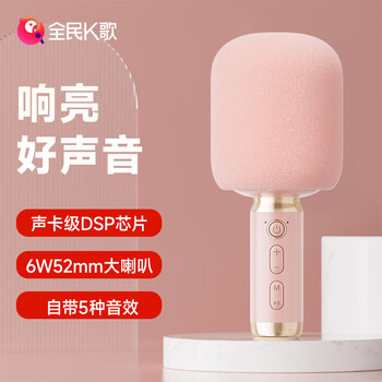 全民K歌麦克风 家庭ktv变声器儿童唱歌卡拉OK电视直播降噪蓝牙k歌音箱手持话筒音响一体M5珊瑚粉