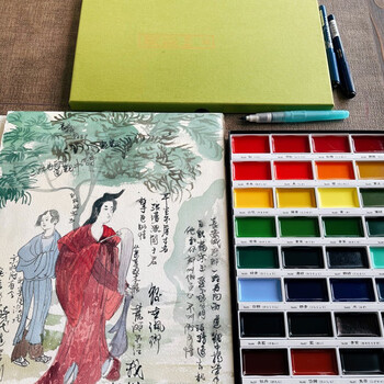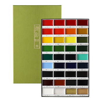 吴竹(KURETAKE)颜彩耽美固体颜料专业美术固体水彩颜料初学者学生用国画颜料水墨画古风工笔画36色MC20/36V