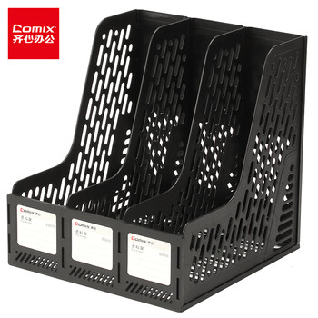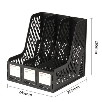 齐心(COMIX)三联镂空桌面文件框 三栏带标签稳固文件栏/文件筐/资料框 办公用 245*255*265 黑ED203/EB719
