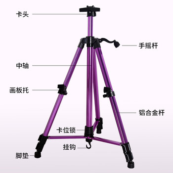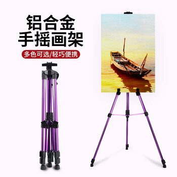 中盛画材紫色铝合金画架画板套装折叠多功能落地画架子支架式便携手摇画架素描套装成人学生画架美术写生
