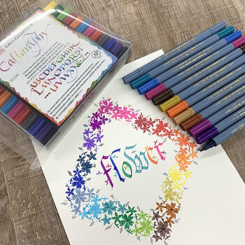 双头水彩笔12支套装,2.0mm的笔芯和3.5mm的笔芯,哥特体大字和小字可以用一支笔完成。