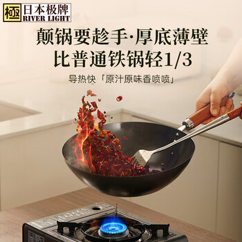 RIVER LIGHT日本极牌炒锅铁锅无涂层炒菜锅电磁炉燃气灶通用本家用炒锅32套装