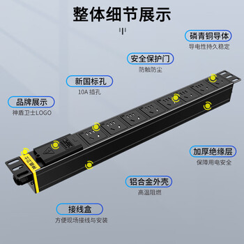 神盾卫士(SDWS)PDU机柜插座8位10A大功率插线板新国标工业插排新国标五孔自接线盒不带线SC080BD