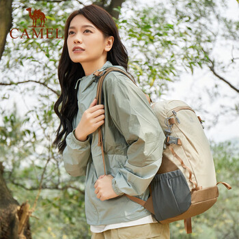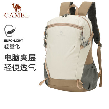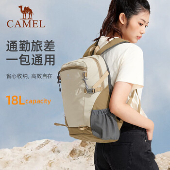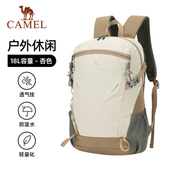 骆驼(CAMEL)云影雪糕包双肩包大容量书包男女户外徒步登山包轻便旅行背包杏色