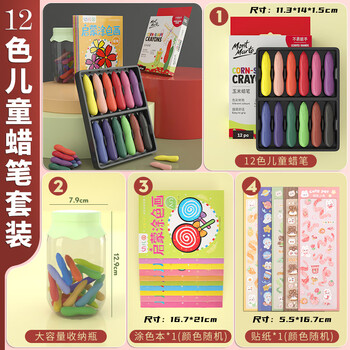 12色儿童玉米蜡笔*1 蜡笔收纳罐530ml*1 儿童创意涂色本*1 儿童贴纸*1