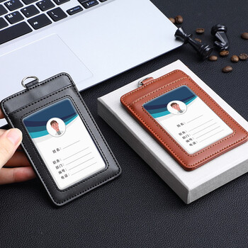 嘉然恒 真皮工作牌企业员工胸牌证件卡套带收纳卡位挂脖牌会议出入证工作证套牛皮材质可定制 黑色竖款