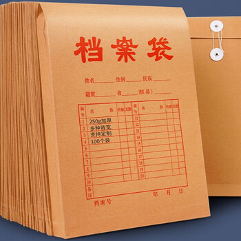 企业定制档案袋 进口牛皮纸250克加厚文件袋 印LOGO印字合同袋 325mm*235mm*40mm 100个/件 6公斤