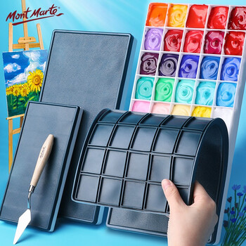 蒙玛特(Mont Marte)颜料盒24格 软盖调色盒水粉绘画调色板美术画画颜料盘套装 便携密封保湿盒3件套SX-ZYPJ-2美术写生