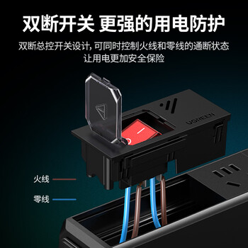 绿联防雷PDU桌面电竞插排 机柜插座 插排长插座/排插/插线板/接线板/拖线板 8位总控线长2.25米