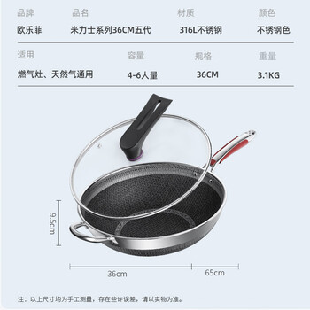 欧乐菲(OLOFE)316L不锈钢炒锅蜂窝平底炒炖菜锅不粘爆炒烹饪锅具燃气灶通用36cm