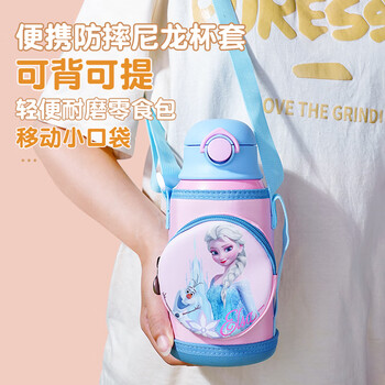迪士尼(Disney)儿童保温杯礼盒双盖吸管婴儿水杯学生316不锈钢保温壶620ML艾莎