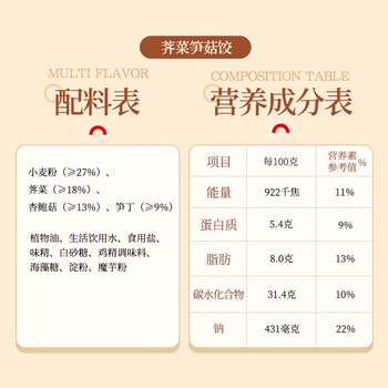 吴大娘荠菜笋菇饺720g*1