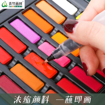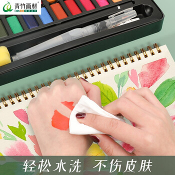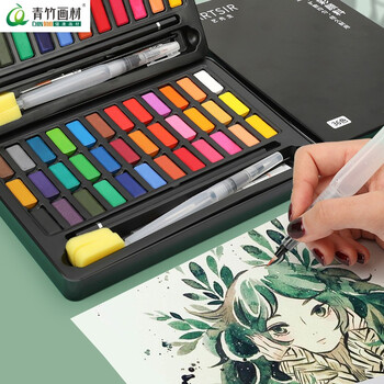 青竹画材(CHINJOO)固体水彩颜料套装36色14件套初学者绘画工具学生美术用品便携画笔毕业国庆出游礼物美术写生