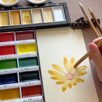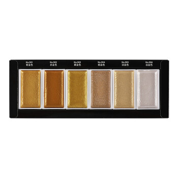 吴竹(KURETAKE)颜彩耽美固体水彩颜料专业美术幻彩色水彩颜料初学者水墨画古风墨彩工笔画金粉6色MC20SC/6V
