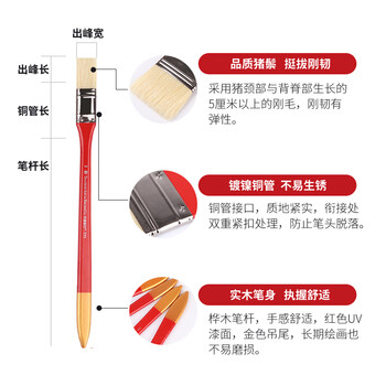 中盛画材6支长杆猪鬃宽笔刷油画刷底纹笔刷猪鬃排刷底纹板刷子丙烯画笔水粉笔美术手绘画墙绘美术写生