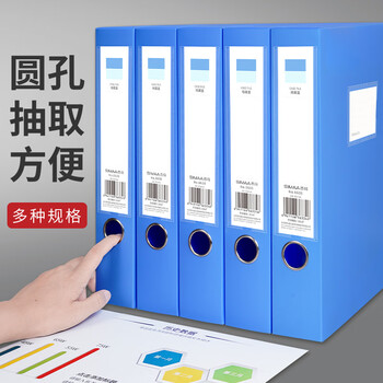 西玛(SIMAA)5只装 55mm 加厚款A4塑料PP蓝色档案盒 文件资料盒 财务凭证收纳盒 办公用品 19119