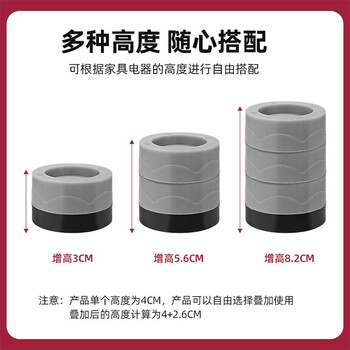 MSF7-3滚筒波轮洗衣机通用脚垫底座托架增高防水防滑减震垫冰箱底座加高品牌通用增高8.2CM灰色4个装