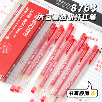 爱好(AIHAO)0.35MM红色全针管大容量中性笔办公签字笔一次性水性笔碳素中性笔8763