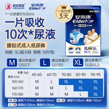 安而康(Elderjoy)长效干爽成人纸尿裤XL10片臀围>110cm成人尿不湿老人卧床夜用