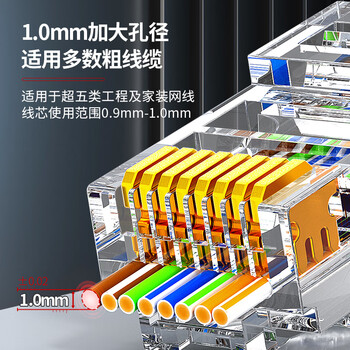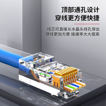 安普康(AMPCOM)超五类网络水晶头通孔穿孔式 RJ45非屏蔽3μ纯铜镀金8P8C超5类百兆网线电脑连接头10个 AM178989