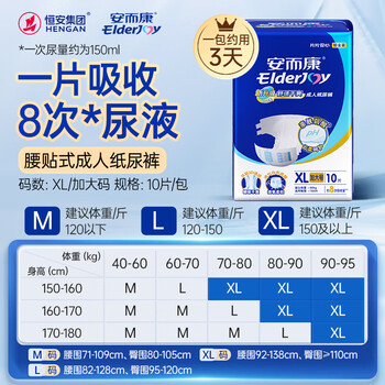 安而康(Elderjoy)舒适干爽成人纸尿裤XL10片臀围>110cm成人尿不湿老人亲肤