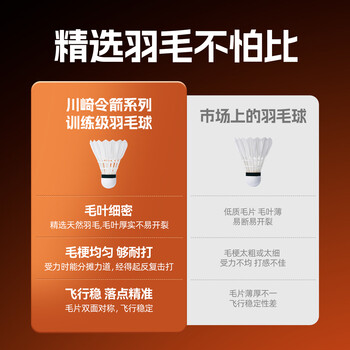 川崎(KAWASAKI)羽毛球耐打稳定训练比赛球天然羽毛12只装 令箭L800